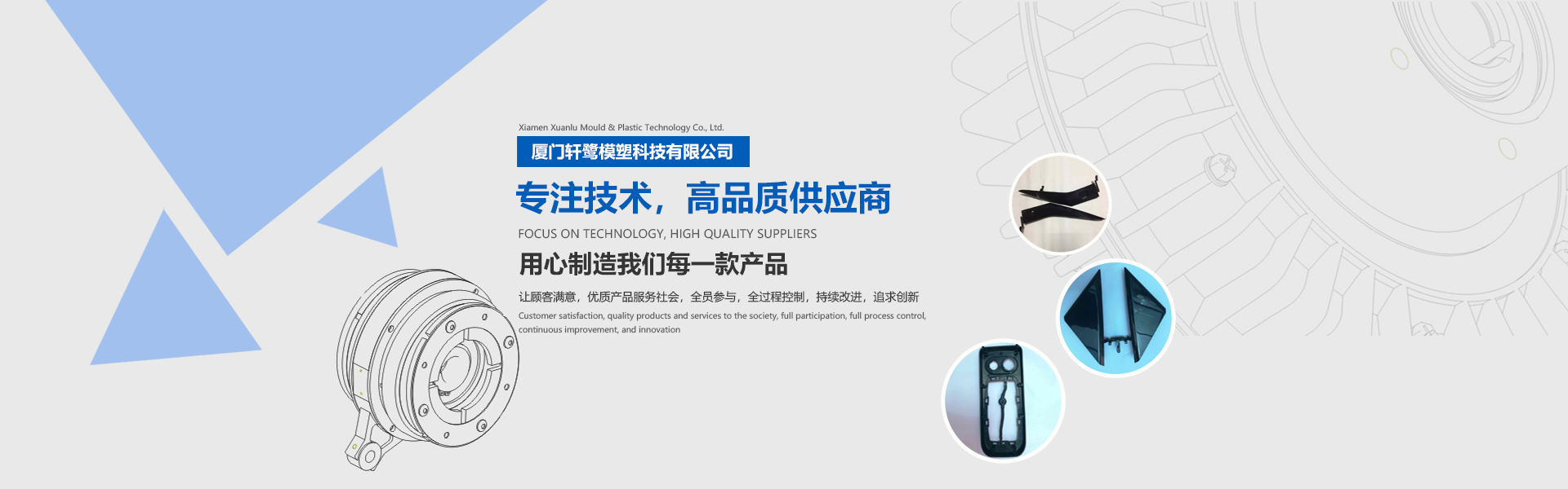 Xiamen Xuan Lu Molding Technology Co., Ltd. was founded in 2010, is located in the beautiful coastal city of Tongan District, Xiamen, 188 West Sai Fu Road. The company specializes in: design and manufacture of precision plastic mold, and pass through ISO9001-2015 quality management system certification, with professional design team and matching high precision processing equipment. Committed to automotive parts, electronic appliances, medical and industrial supplies and other manufacturing enterprises to provide quality products and services! Companies adhering to the principle of integrity and professionality, market-oriented and customer centered development of domestic and foreign markets. Look forward to your presence and cooperation!